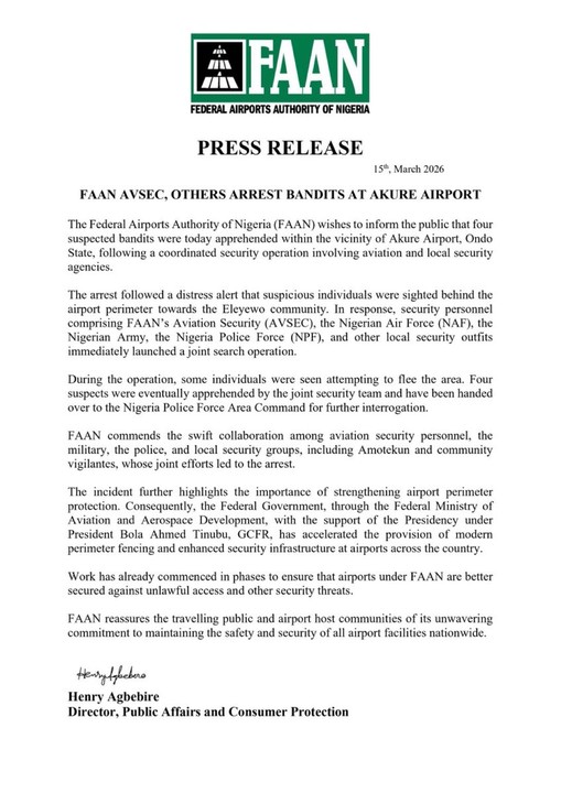 As investigations continue, the focus remains on ensuring transparency, due process, and the consistent application of professional standards across all security agencies operating within Nigeria’s aviation sector.