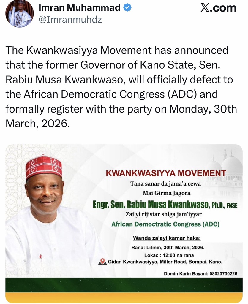 Some observers framed his movement as part of a larger northern political realignment, especially given rumours of a strengthening opposition coalition involving influential figures across regions. Others viewed his move as an attempt to rejuvenate his political relevance after fading from national prominence following the expiration of his tenure and his subsequent fallout with key power blocs within the APC. A number of commentators also suggested that the ADC, increasingly seen as a magnet for prominent disaffected politicians, may be positioning itself as a major third force ahead of the 2027 general election.